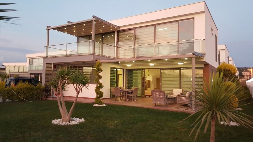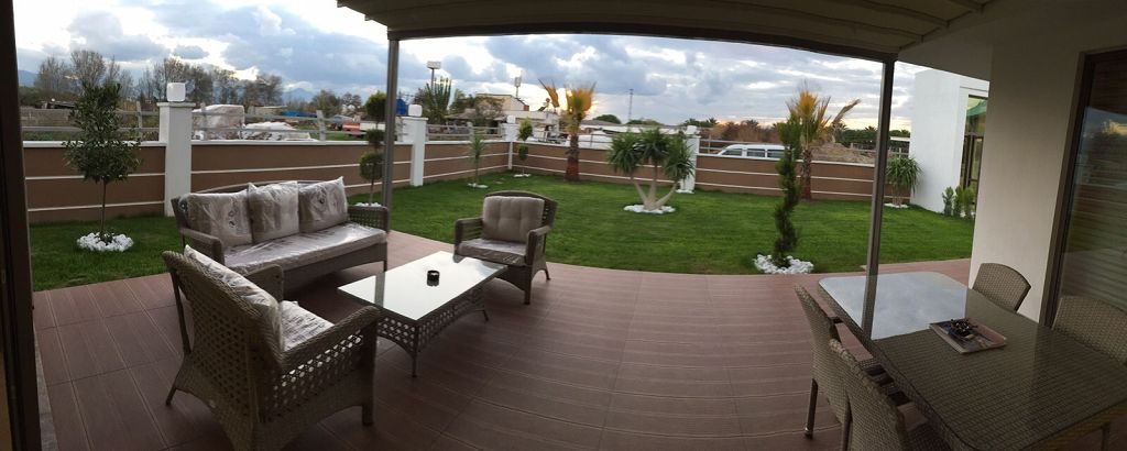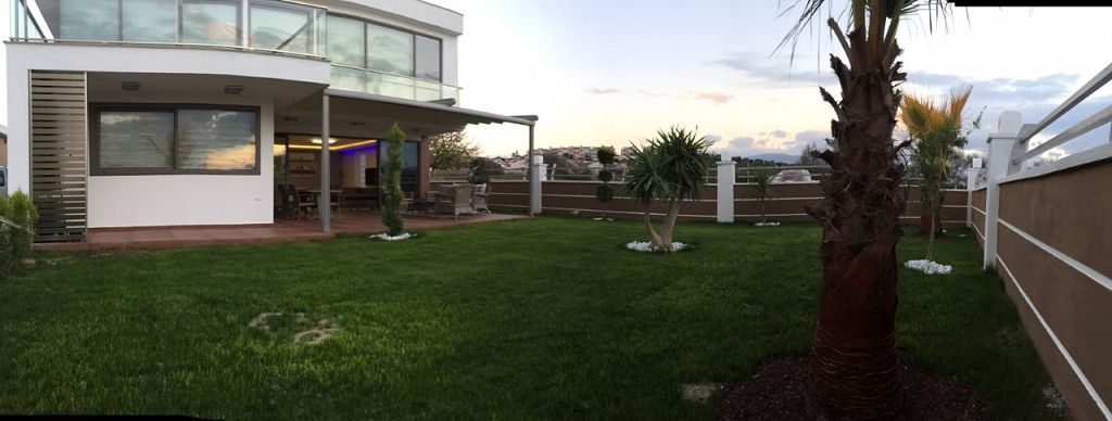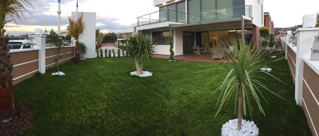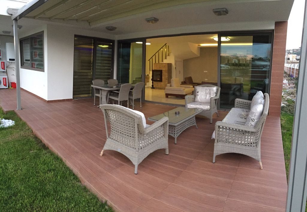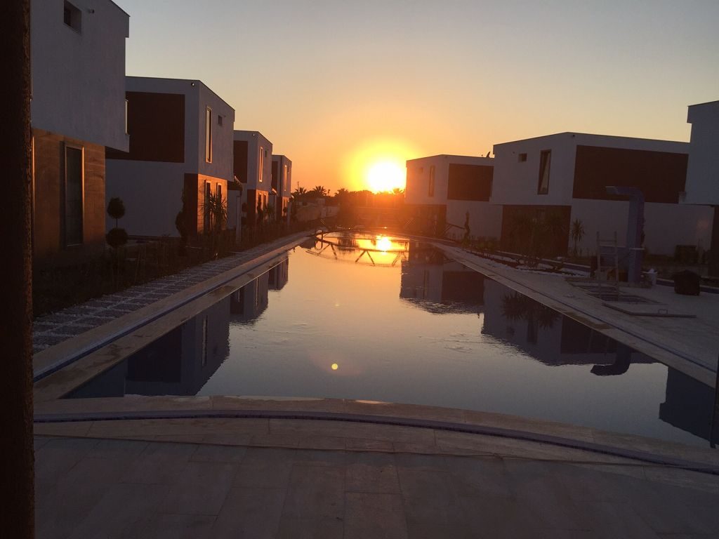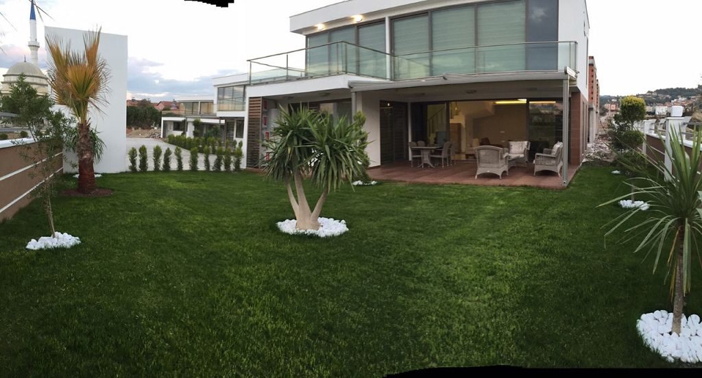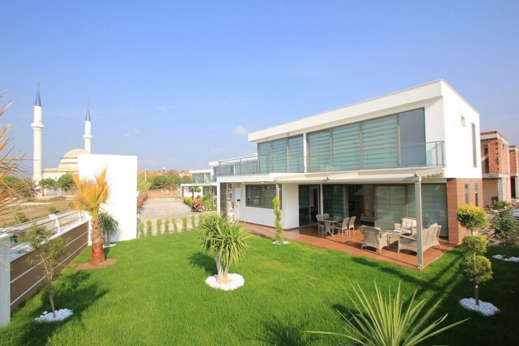 Es ist ein Neubau Villa Viertel mit 24 Villen auf 8500 m2 deren Fertigstellung Ende 2015 war mit einer sehr Exklusiven Ausstattung und hoher Bau Qualität . Die Villas haben ein Gemeinschafts Pool mit 200 m2 mit Kinderpool der extra ist. Durch das Villen areal geht ein Künstlich Angelegter Waasergraben durch der Abend Beleuchtet ist. Die Villas haben 3 Schlafzimmer + 1 wohnzimmer , 2 Badezimmer und 3 WC ´s ,  140 m2 Wohnfläche auf 2 Etagen, Terasse + Balkon mit 47 m2 mit einem Autostellplatz. Gesamt Grundstücksfläche des Hauses mit Garten sind 360 m2.