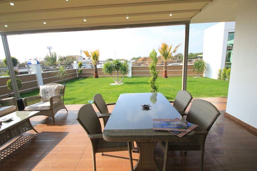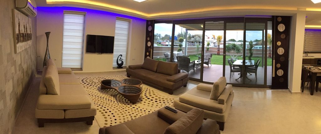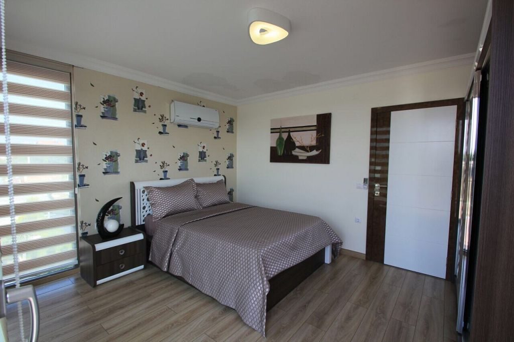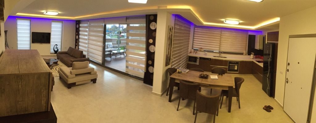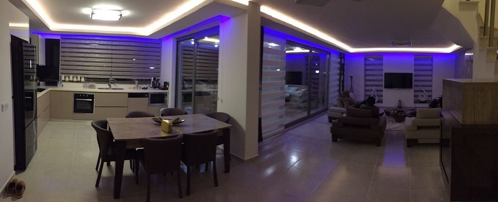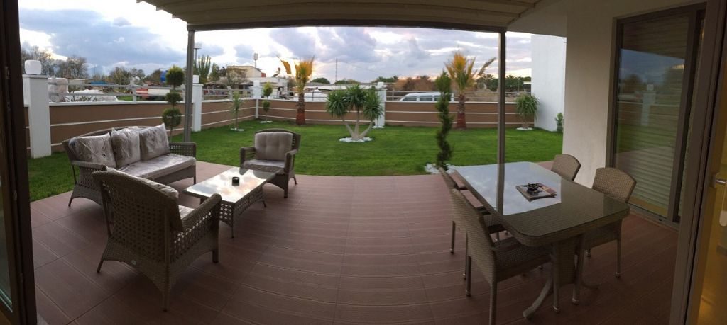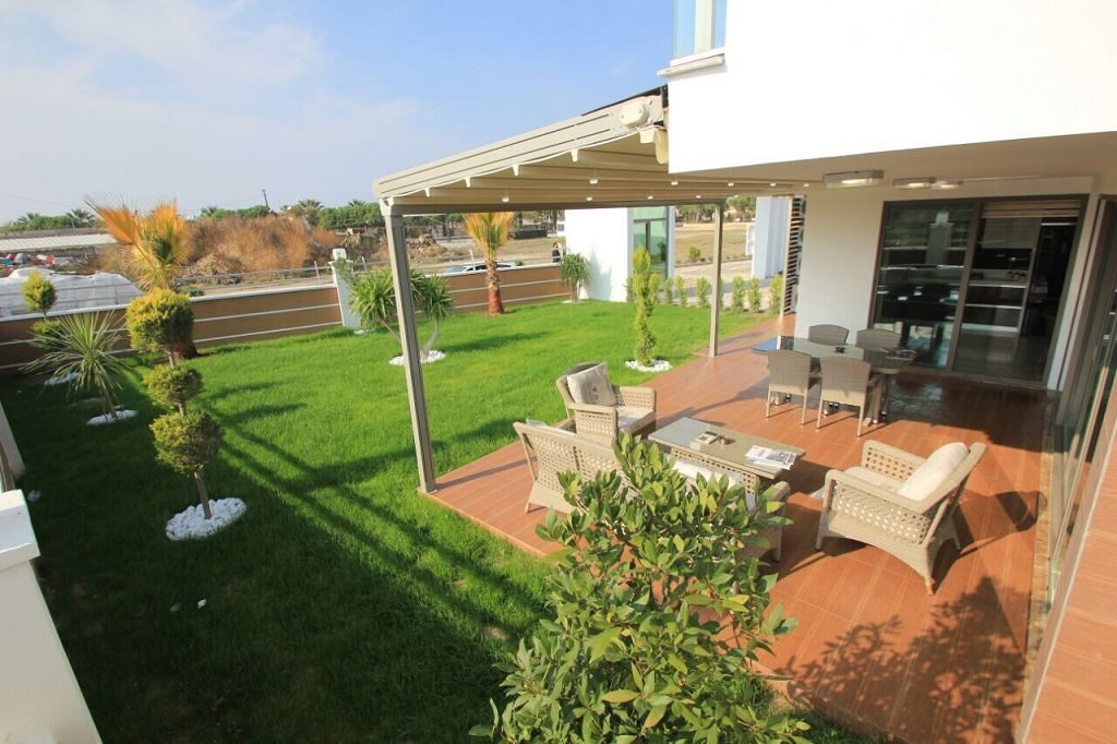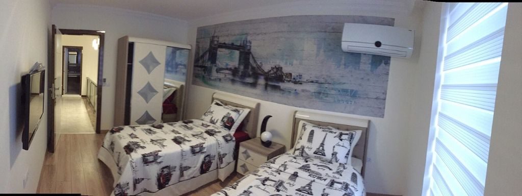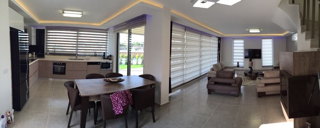 Es ist ein Neubau Villa Viertel mit 24 Villen auf 8500 m2 deren Fertigstellung Ende 2015 war mit einer sehr Exklusiven Ausstattung und hoher Bau Qualität . Die Villas haben ein Gemeinschafts Pool mit 200 m2 mit Kinderpool der extra ist. Durch das Villen areal geht ein Künstlich Angelegter Waasergraben durch der Abend Beleuchtet ist. Die Villas haben 3 Schlafzimmer + 1 wohnzimmer , 2 Badezimmer und 3 WC ´s ,  140 m2 Wohnfläche auf 2 Etagen, Terasse + Balkon mit 47 m2 mit einem Autostellplatz. Gesamt Grundstücksfläche des Hauses mit Garten sind 360 m2.