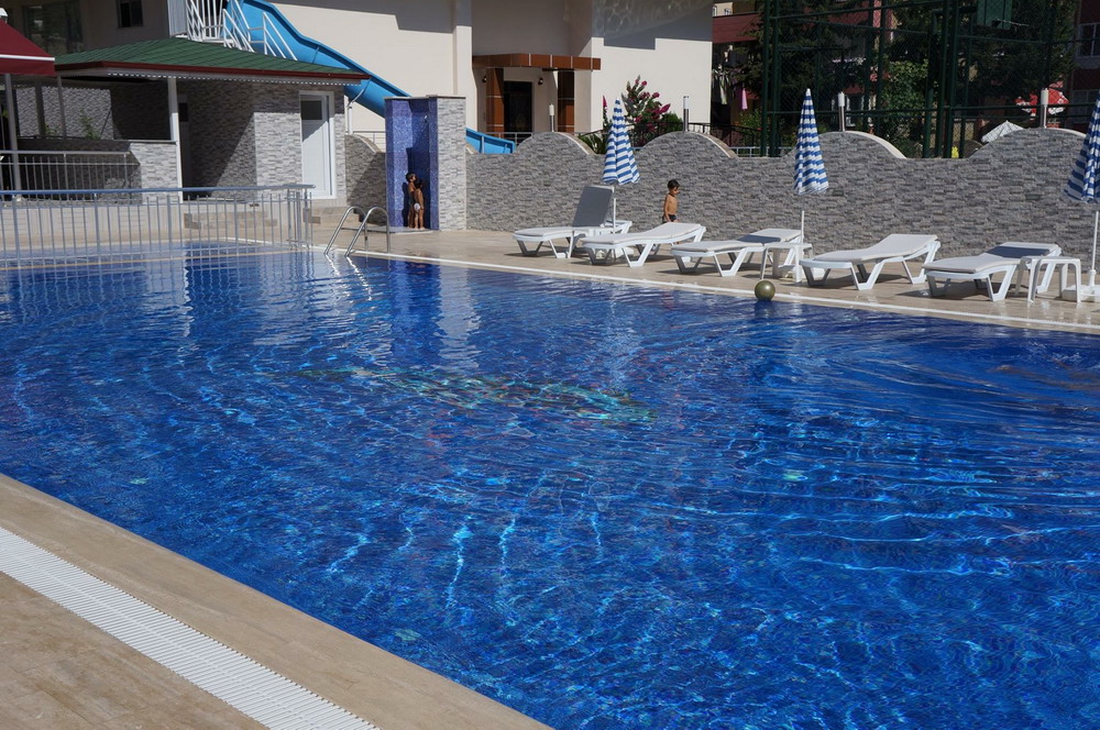 Die Wohnung hat 90 qm 2 Schlafzimmer und 2 Bäder und 2 Balkonen in einer schönen Wohnanlage die Ihnen ein Pool mit einem Cafeteria,Barbecau,Kinderspielplatz und im Wellness Bereich Jacuzzi, Hamam Türkisches Bad, Sauna, Dampfbad, für alle Eigentümer zugänglich ist.